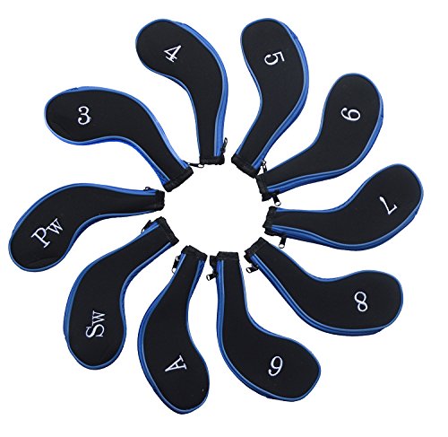 10L0L Neoprene Zippered Golf Club head Iron Covers - Set of 10 (black and dark blue) Reviews